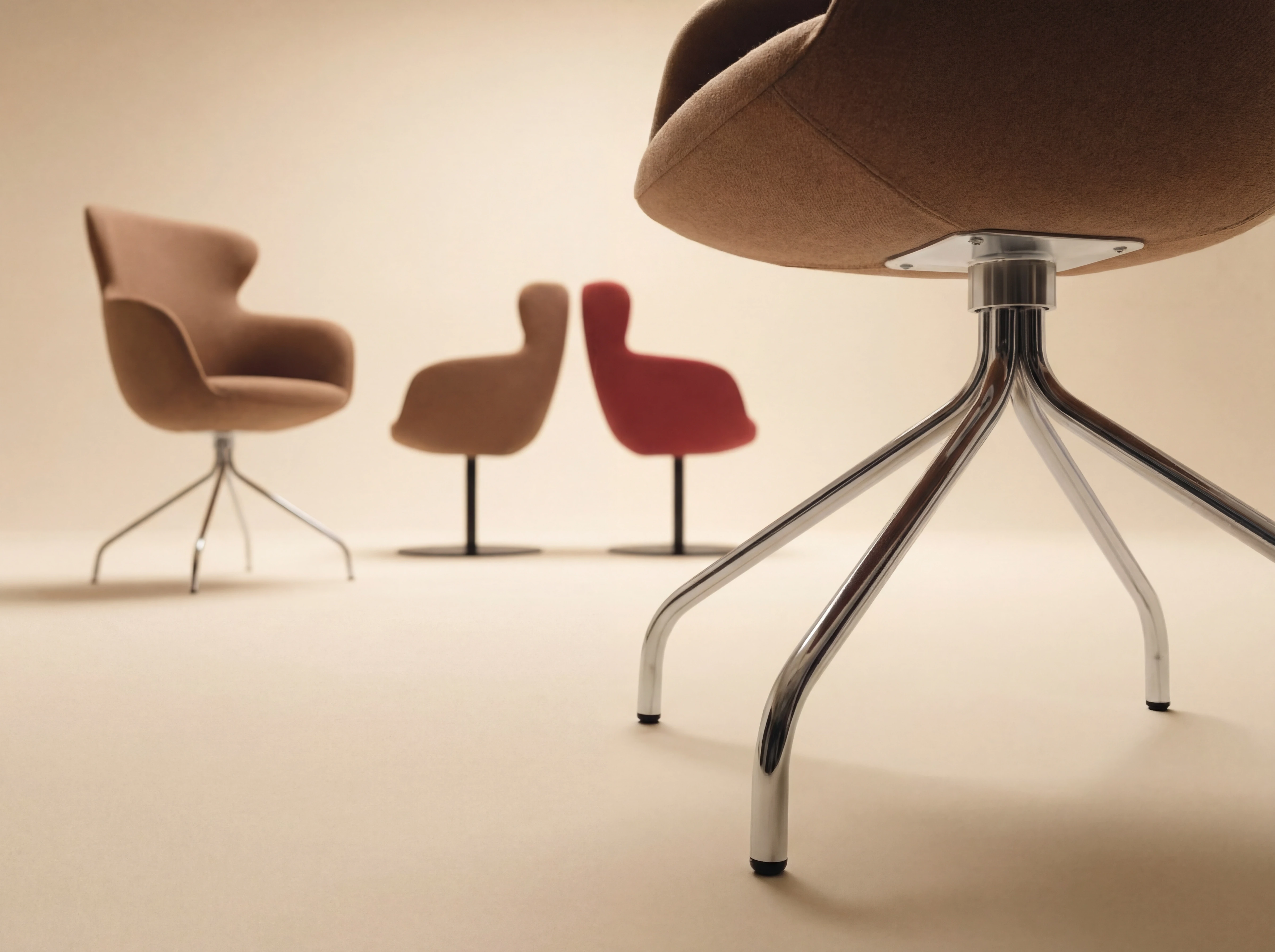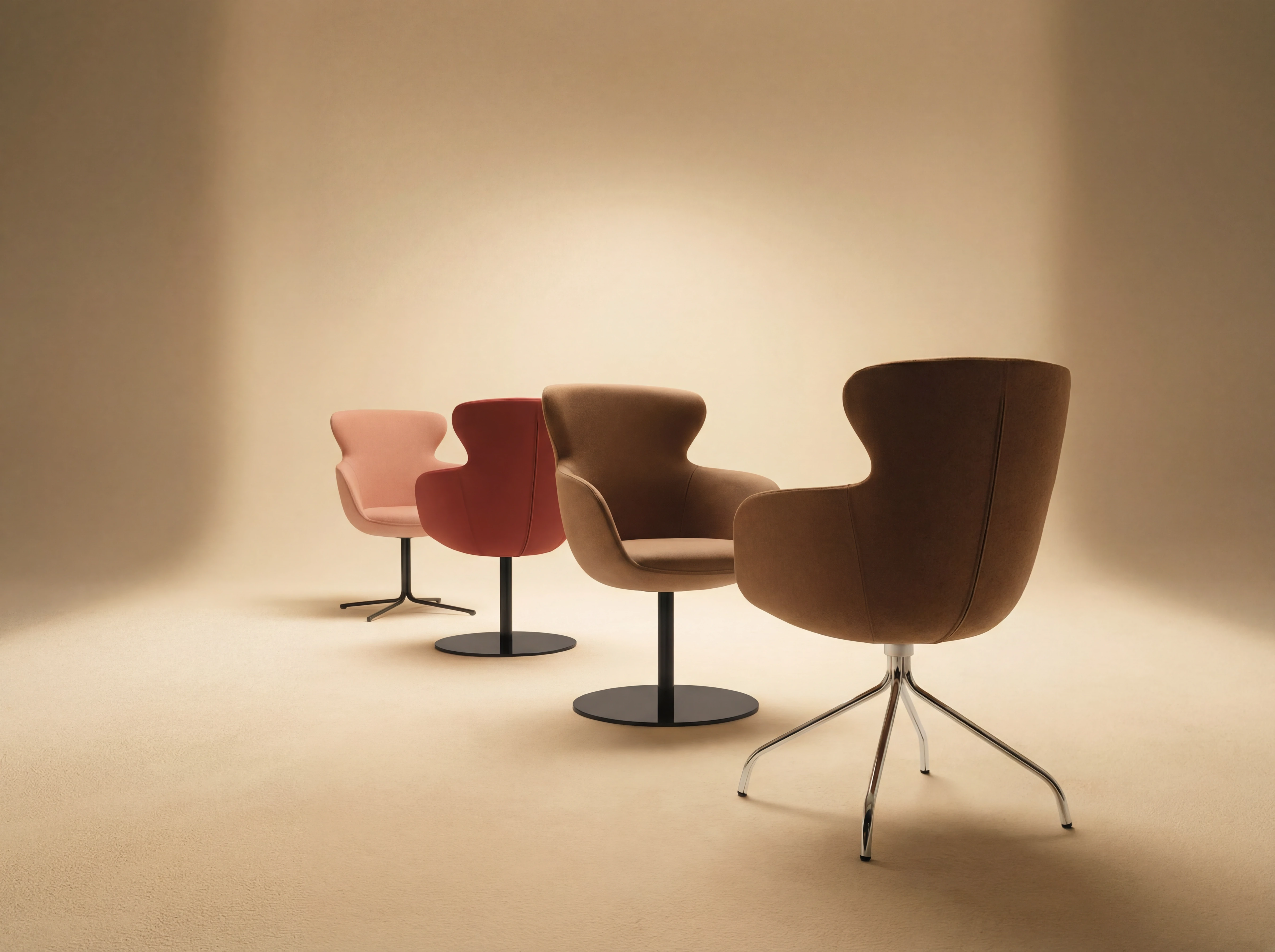 Fotel o miękkiej, kubełkowej formie z oparciem, zaprojektowany z myślą o komforcie gości w hotelach i restauracjach. Tapicerowane siedzisko i subtelne linie dodają wnętrzu przytulności, a jednocześnie zachowują nowoczesny, profesjonalny charakter. Model dostępny jest w różnych wariantach wykończenia oraz na kilku typach podstaw (m.in. drewniane nogi, metalowe podstawy czteroramienne i obrotowe), dzięki czemu łatwo dopasować go do lobby, sali restauracyjnej, strefy lounge czy sal konferencyjnych.